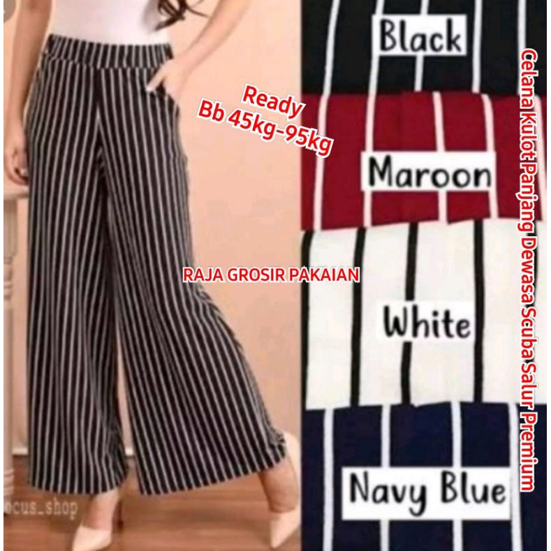 Harga Kulot Panjang Scuba Salur Dewasa/Celana Kulot Panjang Strip Motif Salur