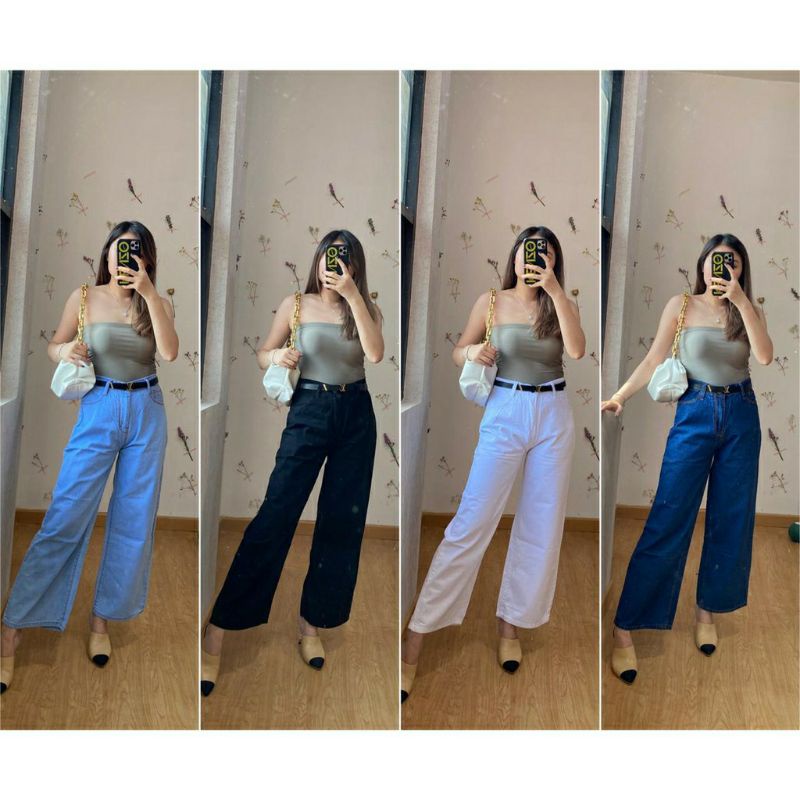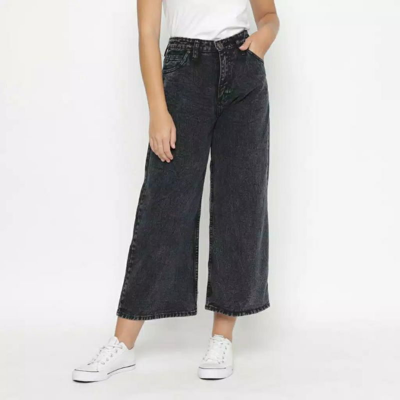 Kanna #2 Celana Kulot Jeans Palazzo Jens Jins Levis Wanita Jumbo Hight Waist Bawah Rawis Kancing Aktif Pinggang Karet Lp 70-105 P 90