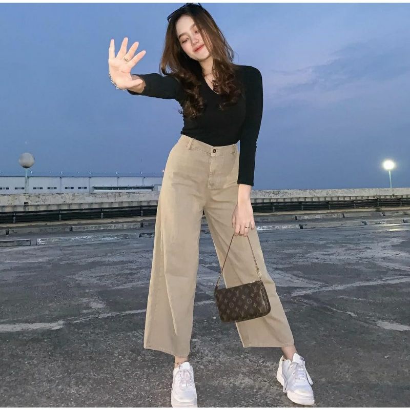 Alasan kenapa harus beli Celana kulot jeans wanita putih jins denim highwaist murah cewek cewe cullote Lepis cutbray levis sekarang