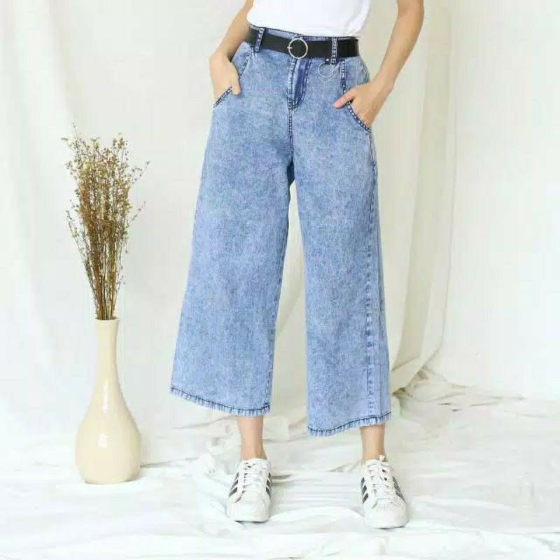 Kelebihan - Kelebihan membeli Celana kulot jeans wanita putih jins denim highwaist murah cewek cewe cullote Lepis cutbray levis di Toko ini