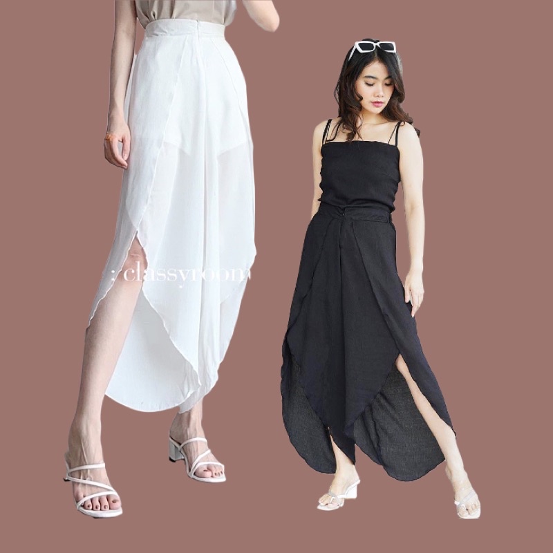 ESCARI PANTS ASSYMETRY SIDE SLIT LAYER CELANA PANJANG KULOT WANITA BAHAN SOFT CRINKLE HIGHWAIST HIGH WAIST POLOS BLACK LIGHT BROWN ARMY GREY BLUE NUDE CREAM WHITE