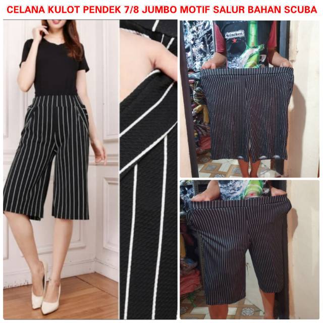 Harga Celana Kulot Pendek 7/8 Jumbo Motif Salur Strep Bahan Scuba Premium