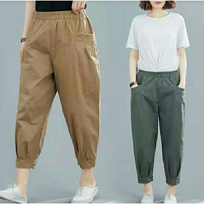 Harga Celana panjang wanita catton Twill premium style korea full kolor celana kulot wanita
