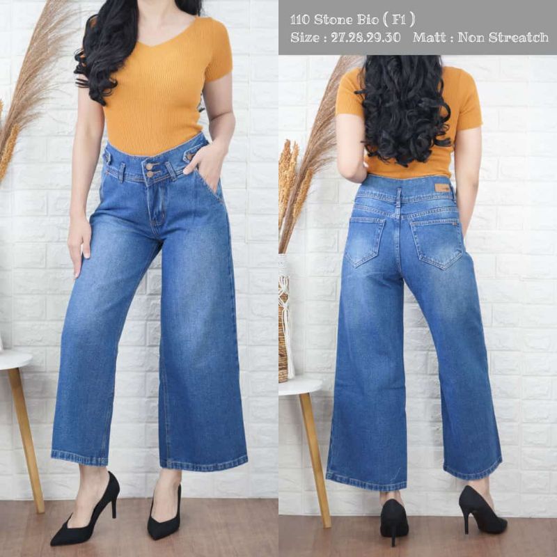 Celana jeans kulot wanita boyfrend kancing 2 rawis bawah kekinian, best seller