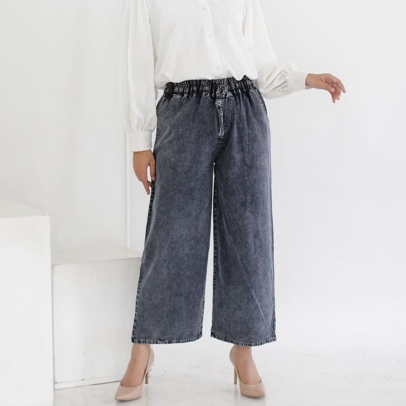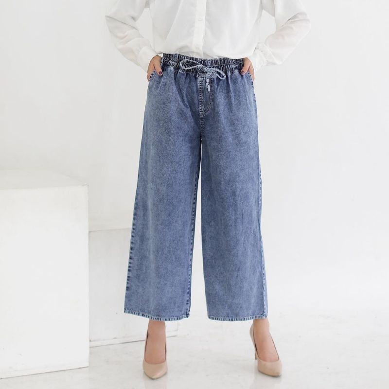 Kelebihan - Kelebihan membeli Highwaist Celana Panjang Jeans Kulot Wanita Pinggang Karet Oversize Bahan Denim di Toko ini