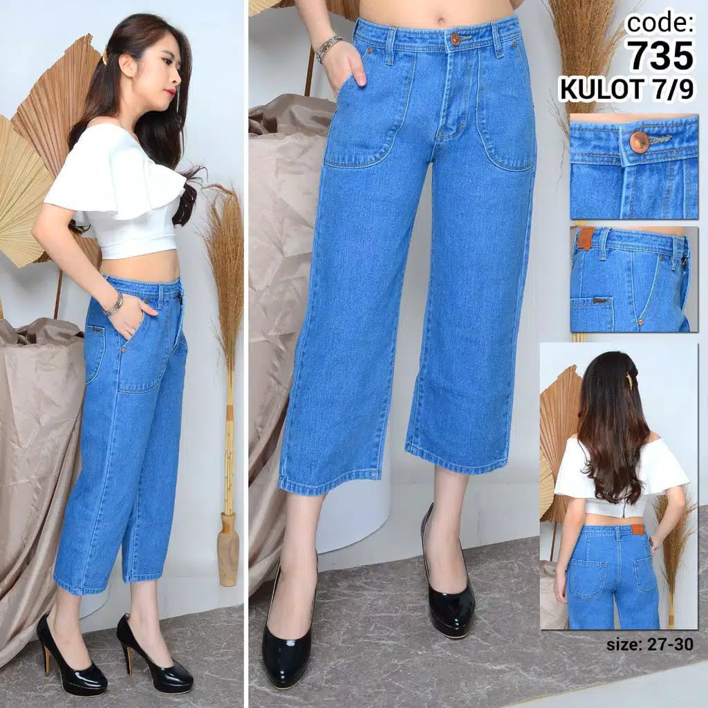 ( Bisa COD ) Asia Mode - Celana Jeans Kulot Polos 7/9 Wanita / Kulot Boyfriend Lepis Loose 7/9 / Celana Jins Kaki Lebar / Kaki Besar / Kaki Gede 7/8