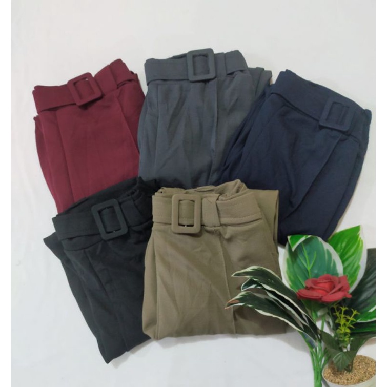 Harga new arrival celana moscrepe belt kotak fit xl/kulot panjang/celana panjang